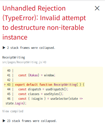 Unhandled Rejection(TypeError): Invalid attempt to destructure non-iterable instance 본문